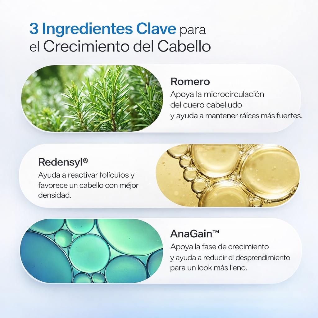 Con uso constante, los usuarios reportan mejoras claras en caída, densidad y apariencia general del cabello.
